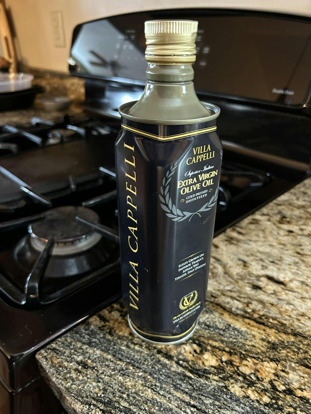 As always, you can be sure Villa Cappelli is 100% extra virgin olive oil, cold-pressed and unfiltered with nothing but freshly crushed olives as an ingredient. Unlike many, many other "extra virgin olive oils."